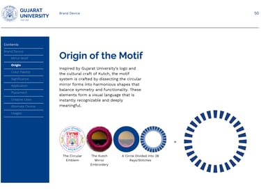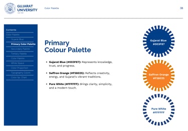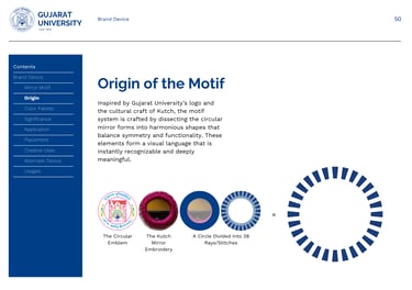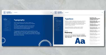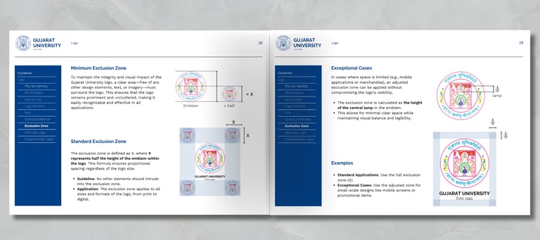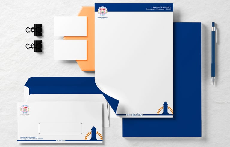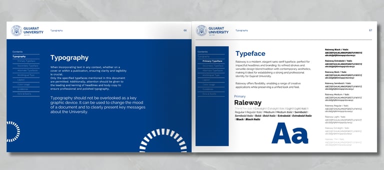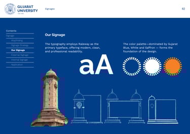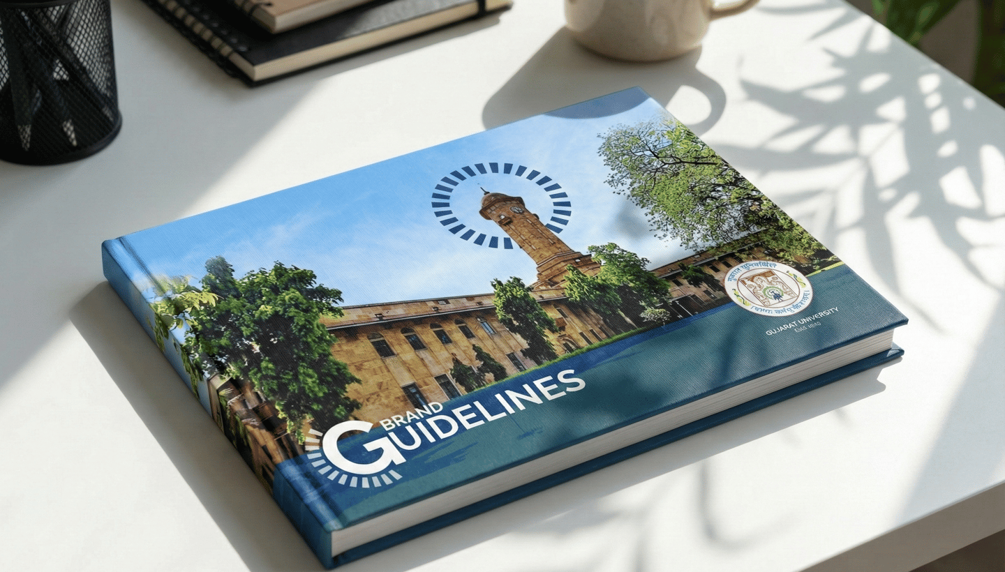 Comprehensive Brand Architecture: Development of the official Gujarat University Brand Guidelines, establishing strict rules for typography, color hierarchies, and logo application.
