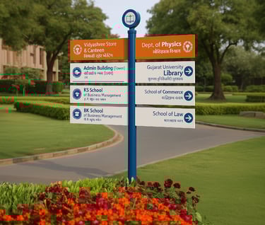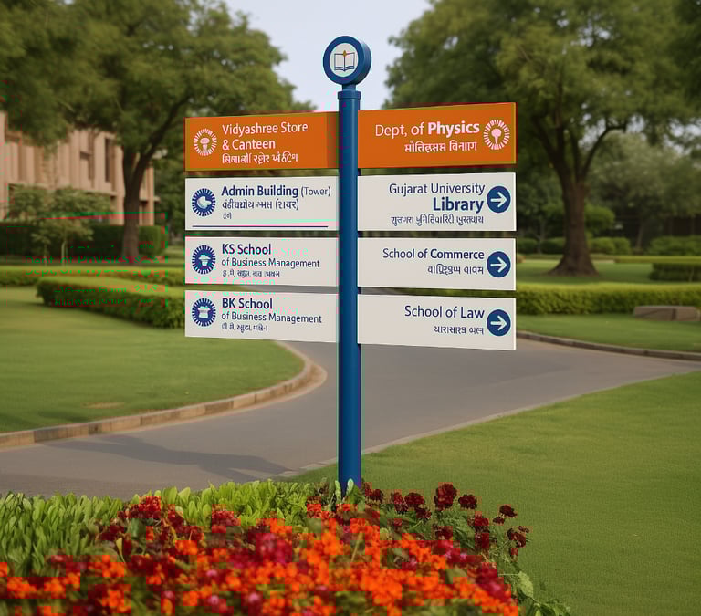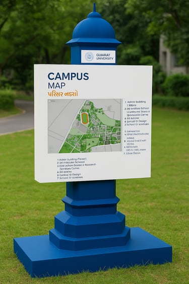 Spatial & Information Design: Engineered user-friendly campus maps and a complete signage and wayfinding system to drastically improve physical navigation across the sprawling campus.