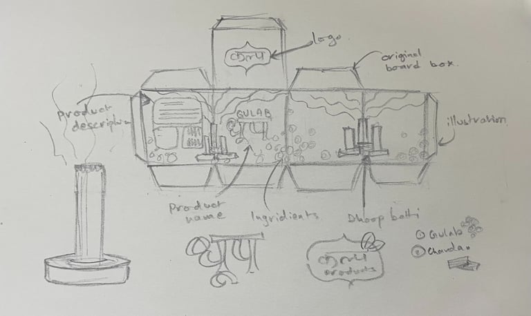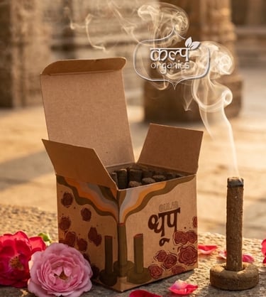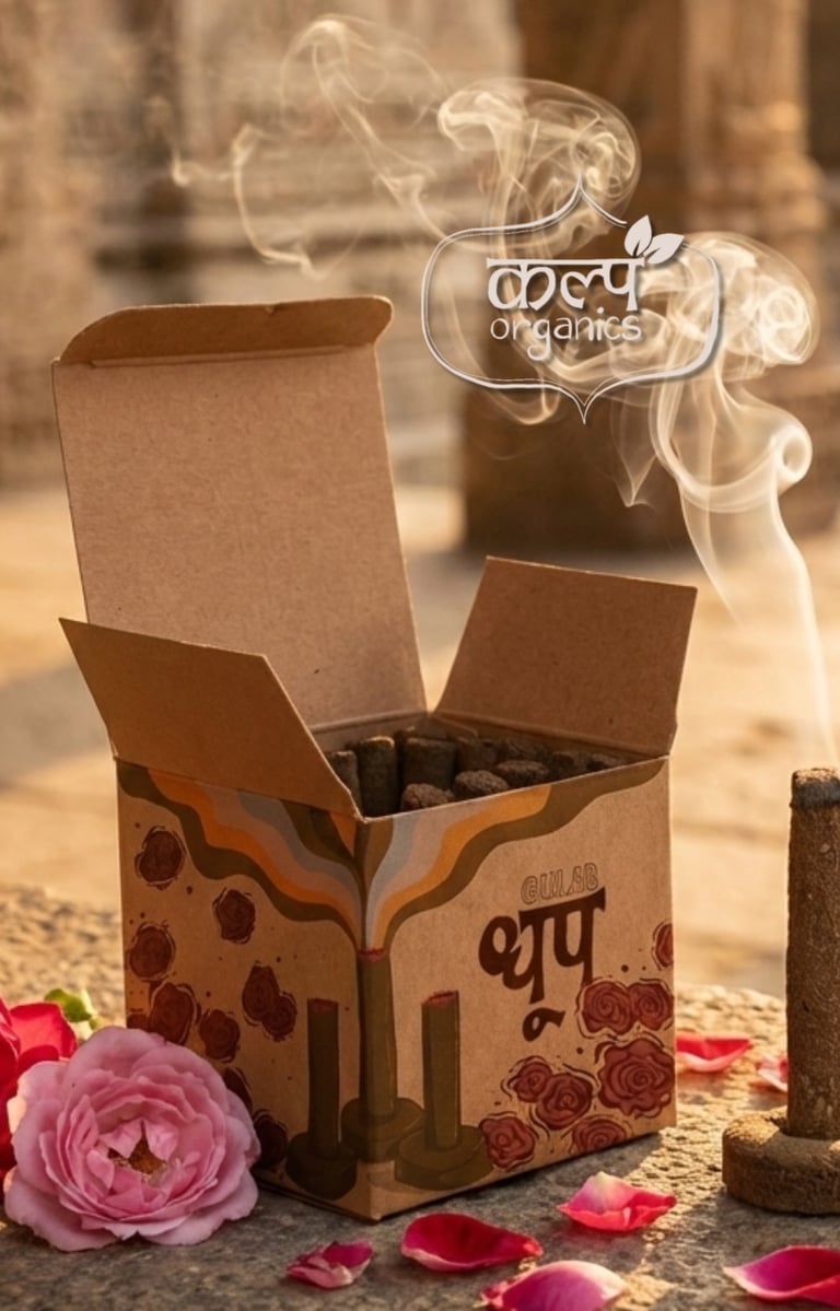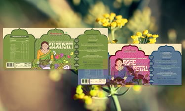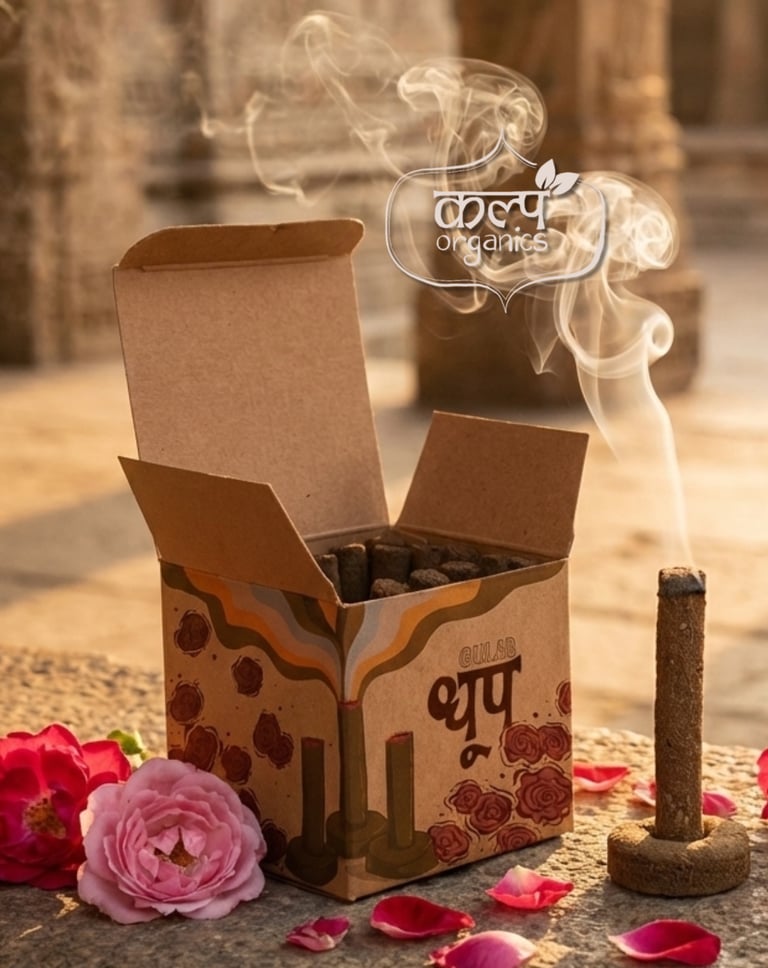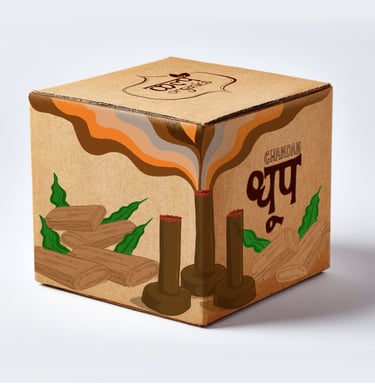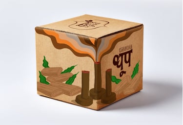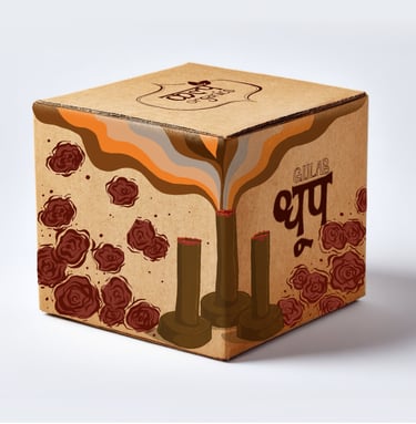 The Concept: Kalp required a packaging solution that visually communicated the organic, sustainable nature of their premium dhoop (incense). The design needed to differentiate between two distinct aromatic profiles—Gulab (Rose) and Chandan (Sandalwood)—while maintaining a unified, earthy brand presence.