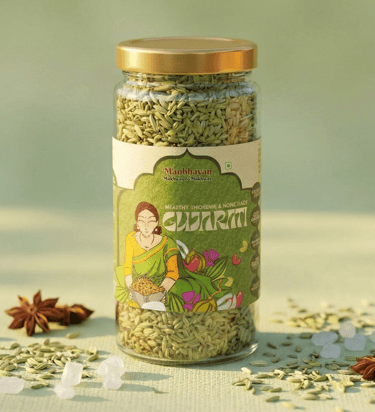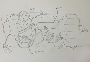 Character-Driven Storytelling: The centerpiece of the label is a custom, hand-illustrated portrait of a Gujarati woman preparing the ingredients. This grounds the product in a sense of "home-made" authenticity and traditional craft.